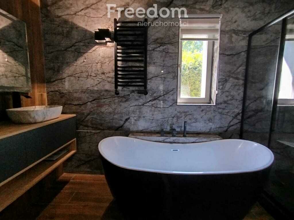 łazience zastosowano wysokiej jakości materiały. Zaprojektowano